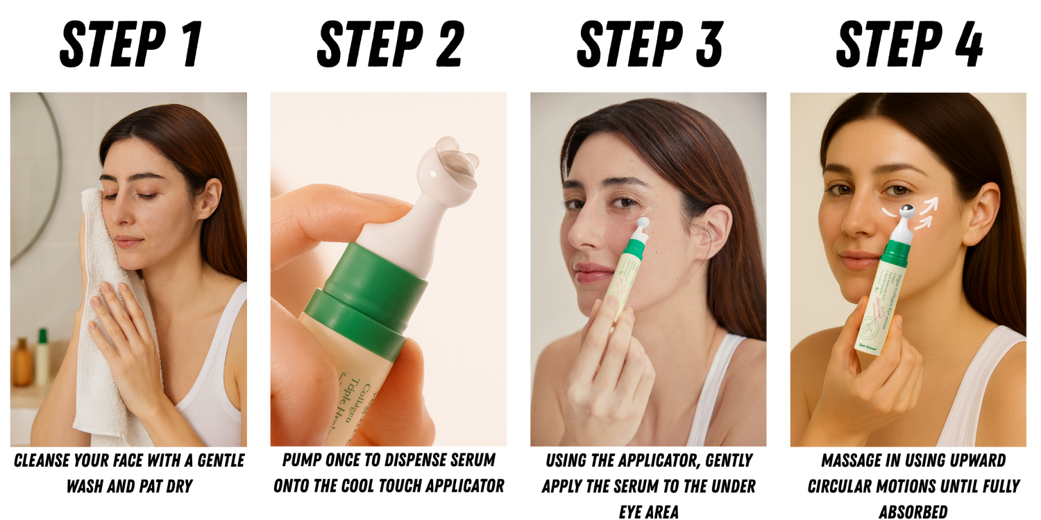 But the real game-changer is our cooling steel applicator. It instantly calms puffiness, boosts circulation, and gives you that refreshing, spa-like feeling every time you use it. It's not just an eye serum…it’s a full under-eye treatment.